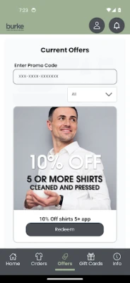 Burke Cleaners Mobile provides instant access to your personal Burke Cleaners account and customer information, giving you the ability to track your orders as they are processed, view your cleaning history and receipts, and much more. Schedule a free on-demand route pickup or simply let the store know that you will be in to grab your items—all with the push of a button. Burke Cleaners Mobile will even notify you when your order is ready for pickup, as well as pass along any special information or promotion.