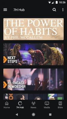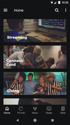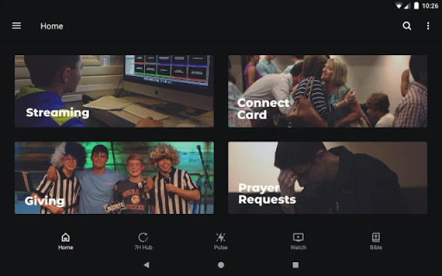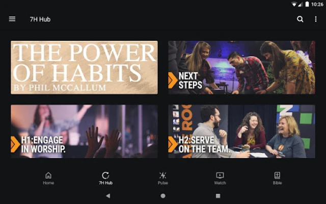 – "Watch" tab is a place to engage with sermons, media, and content from various ministries. (Audio continues playing outside the app, even when the phone is locked, and content is downloadable for offline use. So now you can have those sermons ready for when you go camping or off-the-grid!)