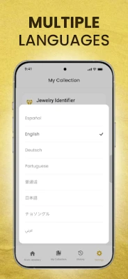 Use the Jewelry Identifier app in your preferred language — English, Spanish, Portuguese, French, German, Japanese, Chinese, Arabic, and more. Perfect for jewelry enthusiasts from all around the world.