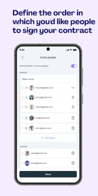 • Send and track with ease: Request signatures, set signing order, and get notified when others view or sign.