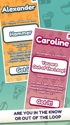 After choosing a category for the round, each player either gets to know a secret word in the category or that they are Out of the Loop. Each player then proceeds to answer a single question about the word before voting for who they think is Out of the Loop. Did someone have a suspicious answer? Did they not laugh at the thought of doughnut filled doughnuts? Vote for them!