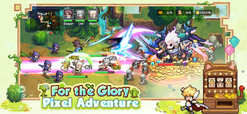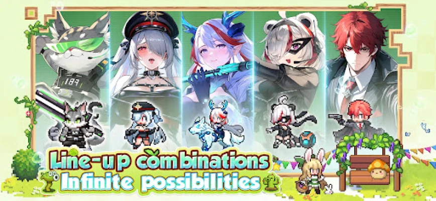 The game adopts a retro pixel art style, unique among today's idle games, providing an exhilarating and nostalgic combat experience. Outside of most pixel scenes, each character has delicate 2D illustrations with an anime style. In story dialogues, illustrations are presented in Live2D form, combining exquisite visuals with pixel art style for greater visual impact and appeal.
