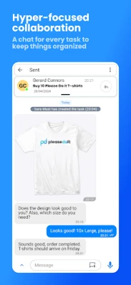 Please Do It allows you to communicate and manage tasks in ONE place, meaning your project management becomes as easy as sending a message!
