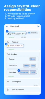 • Send tasks within a couple of seconds: Creating and sending tasks is as easy as sending a message.