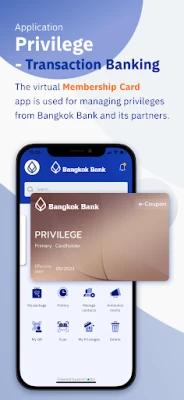 The virtual Membership Card app is used for managing privileges from Bangkok Bank and its partners.