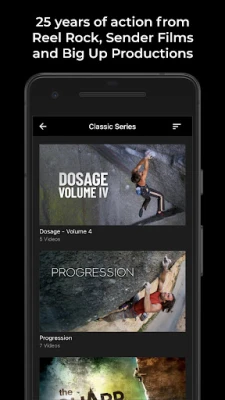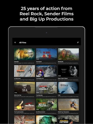 All the epic rock climbing, mountaineering and adventure films from Reel Rock, Sender Films and Big Up Productions, created over the last 25 years.