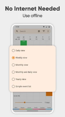 Whether you are looking for a work calendar for business, a day planner, an appointment scheduler, or organization and scheduling of single and recurring events like birthdays, anniversary, appointment reminder, or anything else, Simple Calendar 2023 makes it easy to stay organized. The calendar widget has an incredible variety of customization options: customize event reminders, notification appearance, tiny calendar reminders widget, and overall appearance.