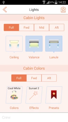 The application is customized to each aircraft’s unique configuration. Configuration includes feature availability in addition to personalize look and feel. Furthermore, many features can be displayed on tail-specific LOPA screens. Access to features may be further organized by roles or locations.